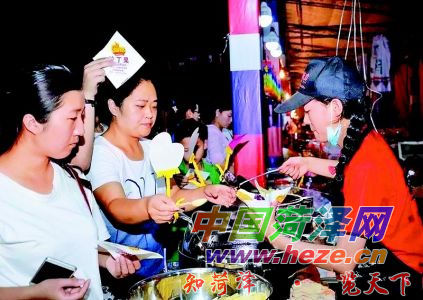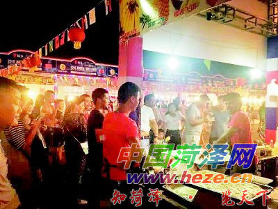 中国菏泽网消息 7月11日,记者从2016菏泽首届(国际)美食文化节工作组了解到,美食文化节在菏泽毅德城举办四天以来,持续火爆,累计约有15万人到现场品尝美食。据了解,美食节以“万国风情,吃遍全球”为主题,本次活动由花冠集团冠名,从7月8日至12日为期5天,现场共设展位70个,有韩国炒年糕、啤酒炸鸡、羊排烧、多味果滋、马桶冰淇淋、印度拉茶、印度飞饼、西班牙帝王蟹等百余档国际美食惊艳你的味蕾。此外,美食节期间每天晚上不仅有丰富多彩的文艺节目,还有趣味比赛游戏互动。 文/图 记者 羊莹春