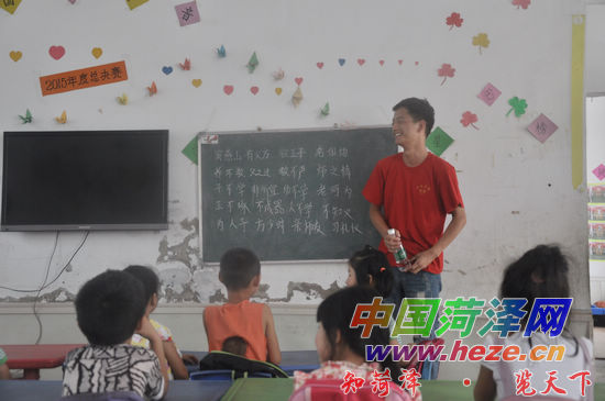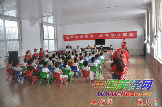 中国菏泽网消息(记者 忠法 通讯员 杨杰)当同学们纷纷背上行囊,踏上回家的旅程的时候,7月13日,菏泽学院文学与传播系师生、菏泽学院阳光Smile志愿者协会一行顶着炎炎夏日来到定陶区孟海镇中心幼儿园,开展“助力菏泽教育,筑梦留守课堂”的支教活动。文学与传播系为孩子们带来了300《弟子规》、《三字经》、《论语》等国学经典图书,并给孩子们发放了文具盒和练习本。