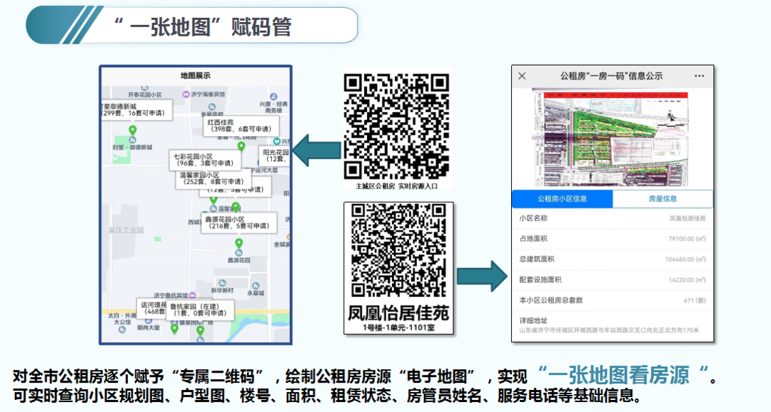 济宁市住房保障和房地产发展事务中心保障性住房服务部部长李志众介绍,之前公租房管理服务存在“环节多、材料多、跑腿多”的问题。去年起,济宁市推出“申请公租房一件事”高效集成服务改革,通过核查平台和智慧保障房管理平台,实现房源可视化、审查协同化、配租便捷化、管理智慧化,实现了公租房申请“全链条网上办”。以房源可视化为例,通过为每套公租房赋予“专属二维码”,市民可以实时查询户型、租赁状态等信息。