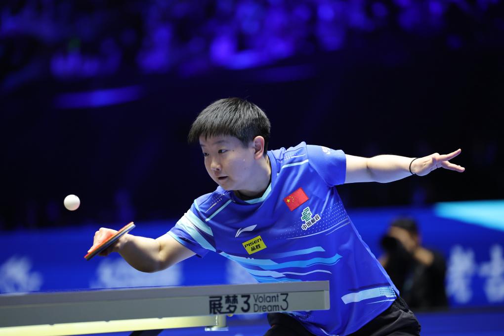 2月19日,孙颖莎在比赛中回球。新华社记者 梁旭 摄