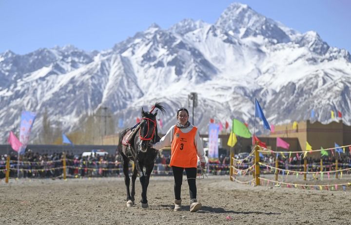 古丽艾萨家住新疆维吾尔自治区喀什地区塔什库尔干塔吉克自治县(简称“塔县”)。这里位于帕米尔高原东麓,牧场遍布。与新疆其他牧区一样,赛马也是塔县民间常见的体育运动。曾经,人们多在婚礼和节日聚会时赛马相庆;如今,塔县将赛马、牦牛叼羊等传统体育项目纳入文旅产业,集中展演,助力文化传承和乡村振兴。