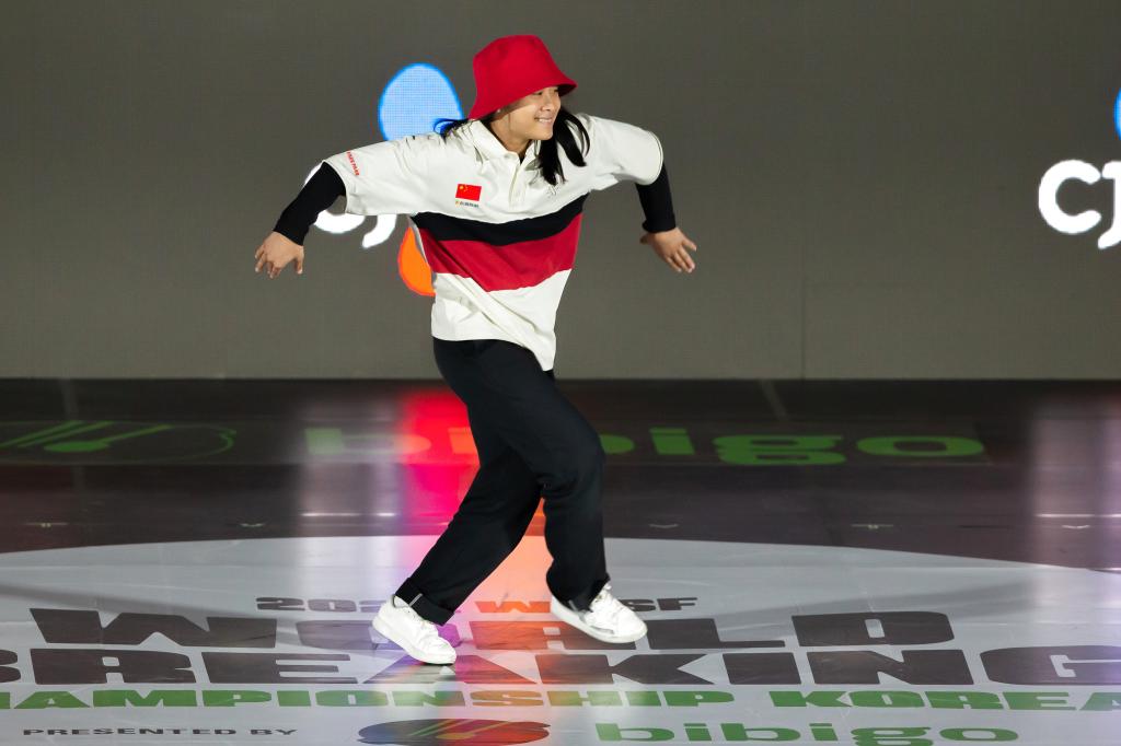天赋确实是她的底色。七岁开始接触霹雳舞,2018年年仅10岁的她便在国内著名民间赛事“天下布舞”中夺得女子组冠军,成为历史上该奖项年龄最小的获奖者,随后她又在第二年成功卫冕,自此声名鹊起。2022年,她还在上初中,就在韩国首尔世锦赛上闯入32强。