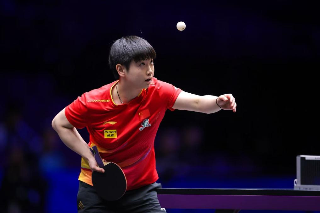 王曼昱当天率先登场,迎战中国澳门队的朱雨玲。首局比赛,王曼昱开局3:0领先,之后朱雨玲反超并拉开比分,以11:8先声夺人。第二局,王曼昱又在4:0领先的情况下被对手以11:6逆转。绝境中的王曼昱在第三局顶住压力,以11:8扳回一局。但手感火热的朱雨玲在第四局抓住机会,以11:5锁定胜局。