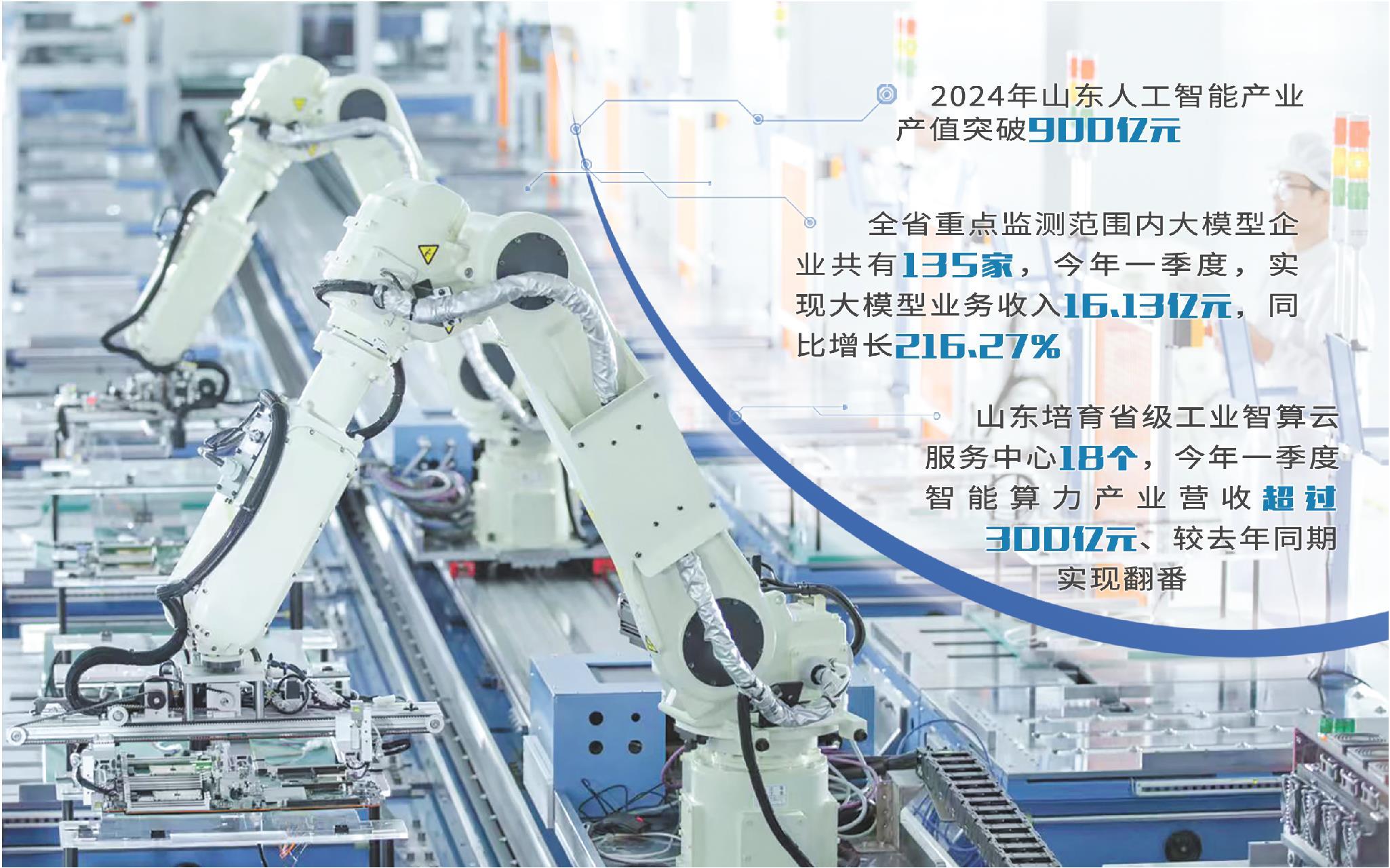 2024年山东人工智能产业产值突破900亿元;从大模型细分产业看,全省重点监测范围内大模型企业已有135家。