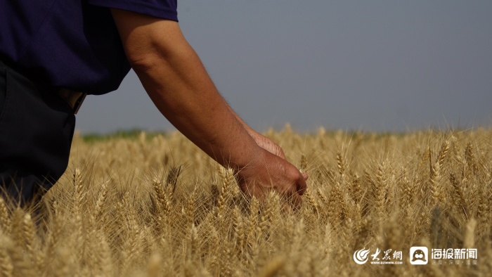 在永安镇前七村的麦田里,联合收割机来回穿梭。田兆山抓起一把麦粒向记者展示:“你看这麦粒多么饱满!以前这里的土地泛着白碱,种什么都不长,现在却变成了‘金土地’。这3000亩土地,主要种植‘济麦60’,整体来看,今年和去年的表现相当,预计亩产也能达到500多公斤。”