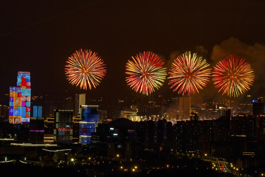 这是8月7日拍摄的开幕式上的焰火表演。新华社记者 王翔 摄