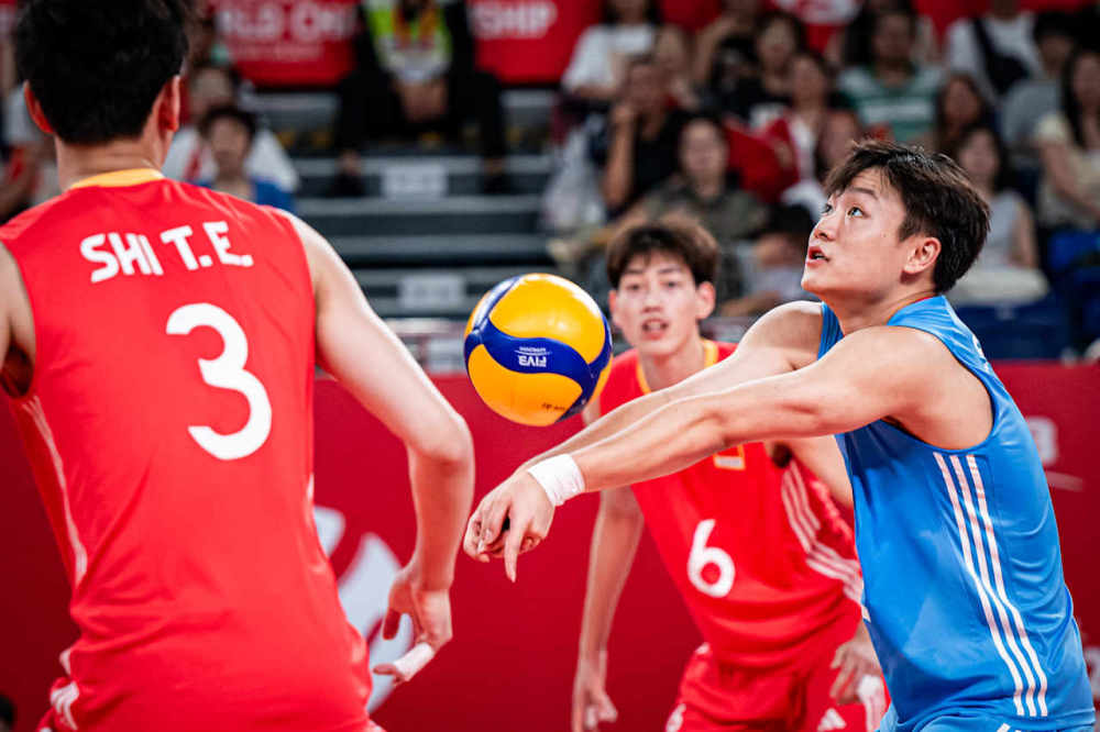 图为中国队球员在比赛中接球。图片来自国际排联Volleyballworld网站