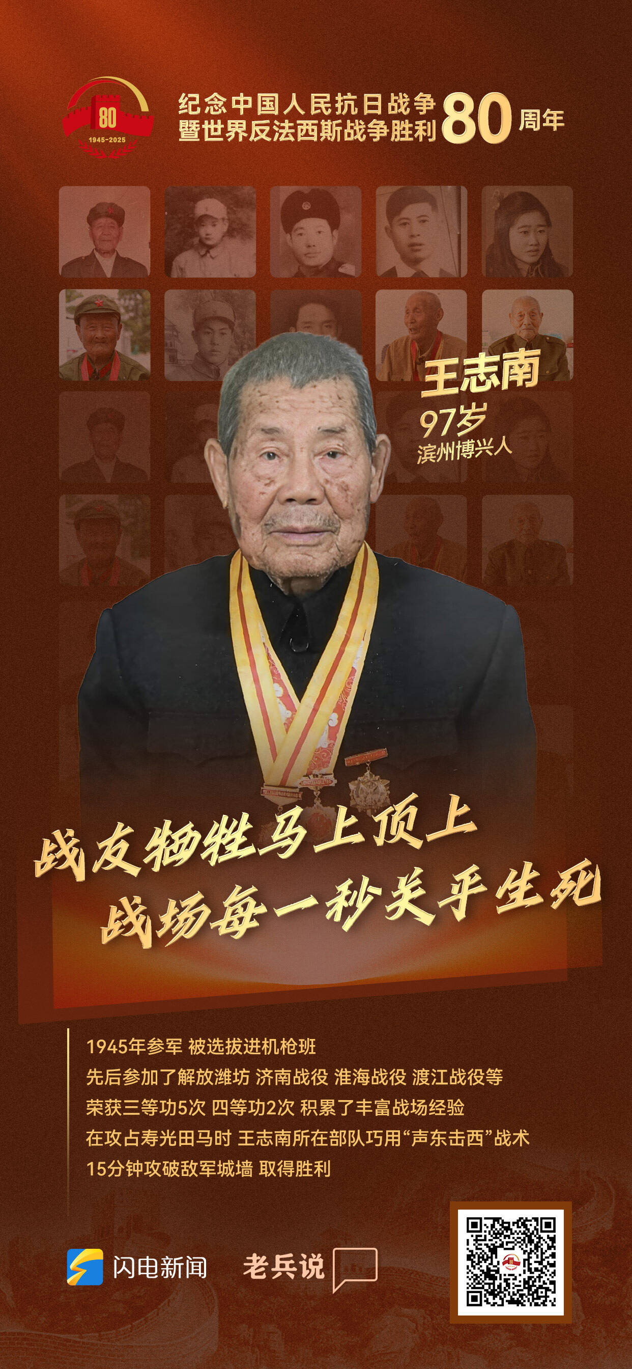 齐鲁网·闪电新闻9月1日讯 为纪念中国人民抗日战争暨世界反法西斯战争胜利80周年,山东省委网信办、山东省退役军人事务厅、齐鲁网·闪电新闻策划推出“致敬!老兵”系列人物海报,今天走近“战友牺牲马上顶上,战场每一秒关乎生死——王志南”。