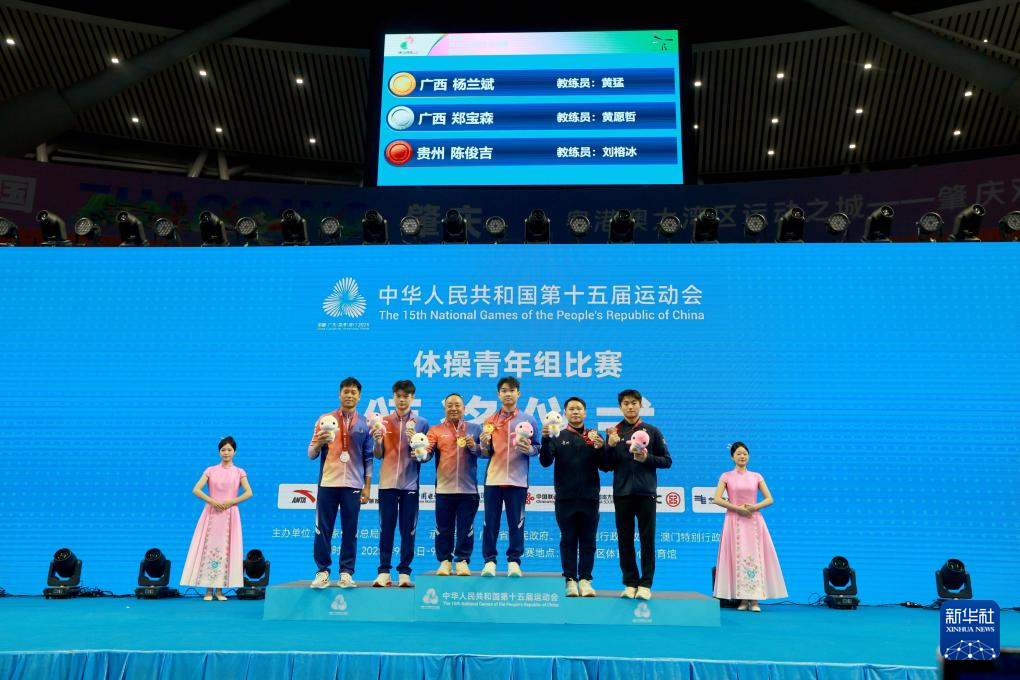 当日,第十五届全国运动会体操项目男子青年组个人全能决赛在广东省肇庆市举行。