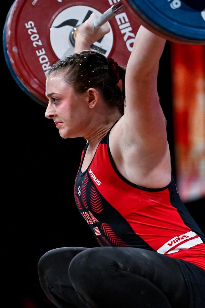 里夫斯是巴黎奥运会女子71公斤级冠军。本次世锦赛她升到了77公斤级。比赛中,她以抓举123公斤、挺举155公斤和总成绩278公斤连刷三项世界纪录,实力碾压其他29位参赛者。