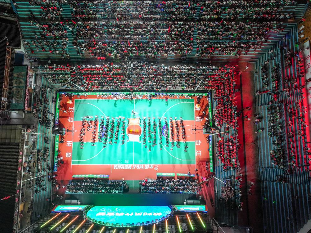 这是2024年3月22日拍摄的2024年乡村篮球球王争霸赛开幕式现场(无人机照片)。当日,以“活力四射 迎‘篮’而上”为主题的2024年乡村篮球球王争霸赛开幕式在贵州省黔东南苗族侗族自治州台江县台盘村举行。本次比赛将从3月持续到11月,是一次跨度长、范围广的全新赛事。新华社记者 杨文斌 摄
