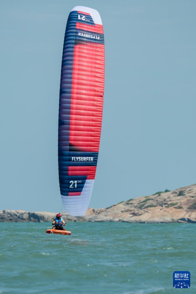 10月30日,山东队选手张浩然在男子水翼风筝板级比赛中。最终,他获得亚军。