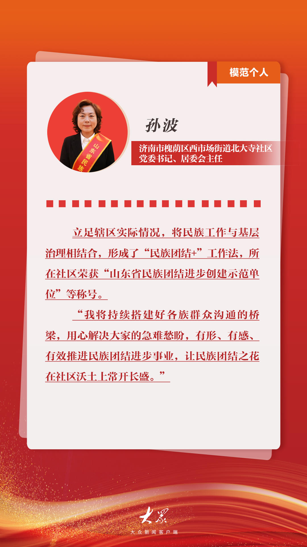10月31日,一批为齐鲁大地民族团结事业作出突出贡献的山东省民族团结进步模范集体和模范个人受到表彰,他们以实际行动谱写了“中华民族一家亲,同心共筑中国梦”的生动篇章。让我们一起了解2个模范集体和4位模范个人用真诚与行动书写的团结故事,汲取榜样的力量。