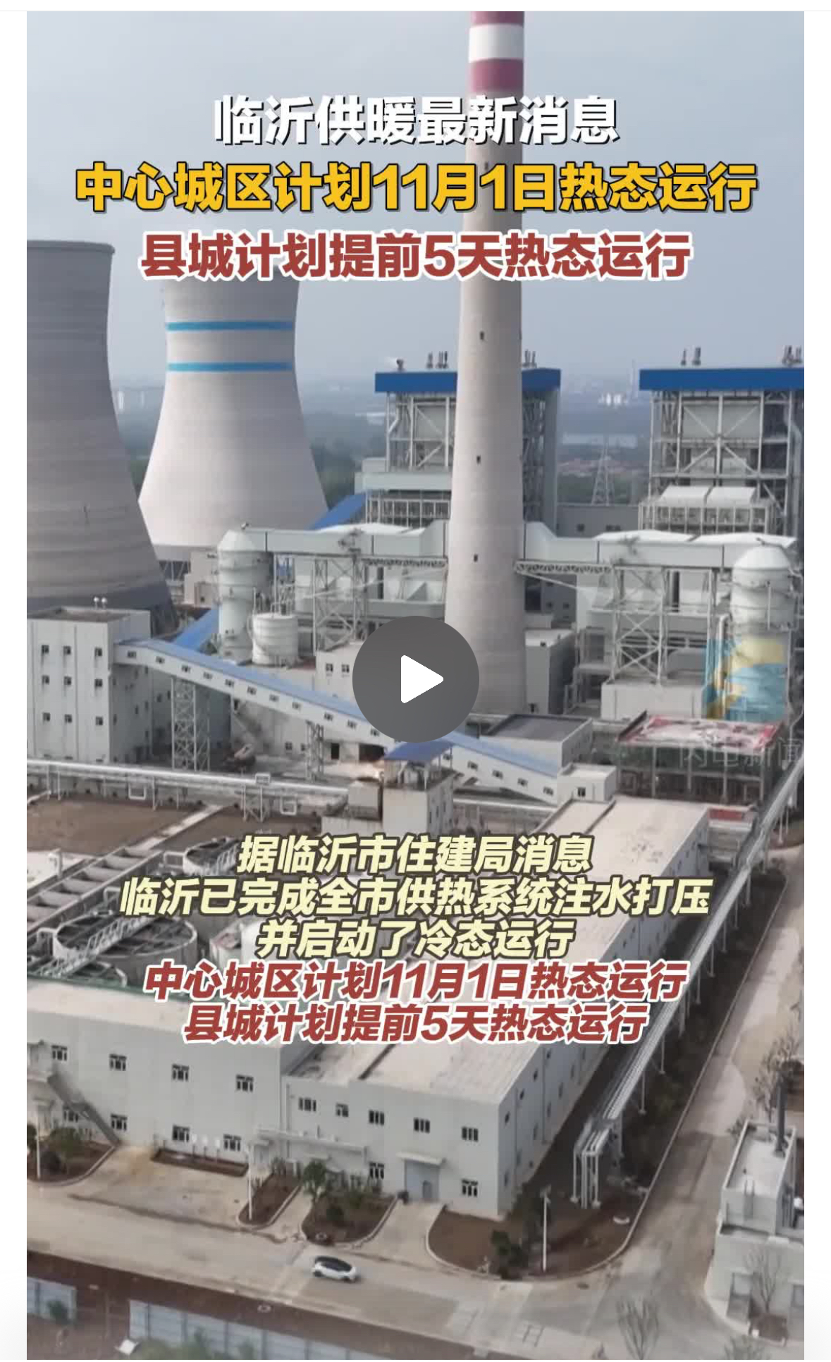 10月27日,临沂市召开全市供热工作新闻发布会。临沂市住建局发布消息称,临沂已完成全市供热系统注水打压,并启动了冷态运行,中心城区11月1日热态运行,逐步提升水温确保11月10日能够达标供热。各县计划在正式供热前提前5天启动热态运行,确保供热系统处于良好待运状态。