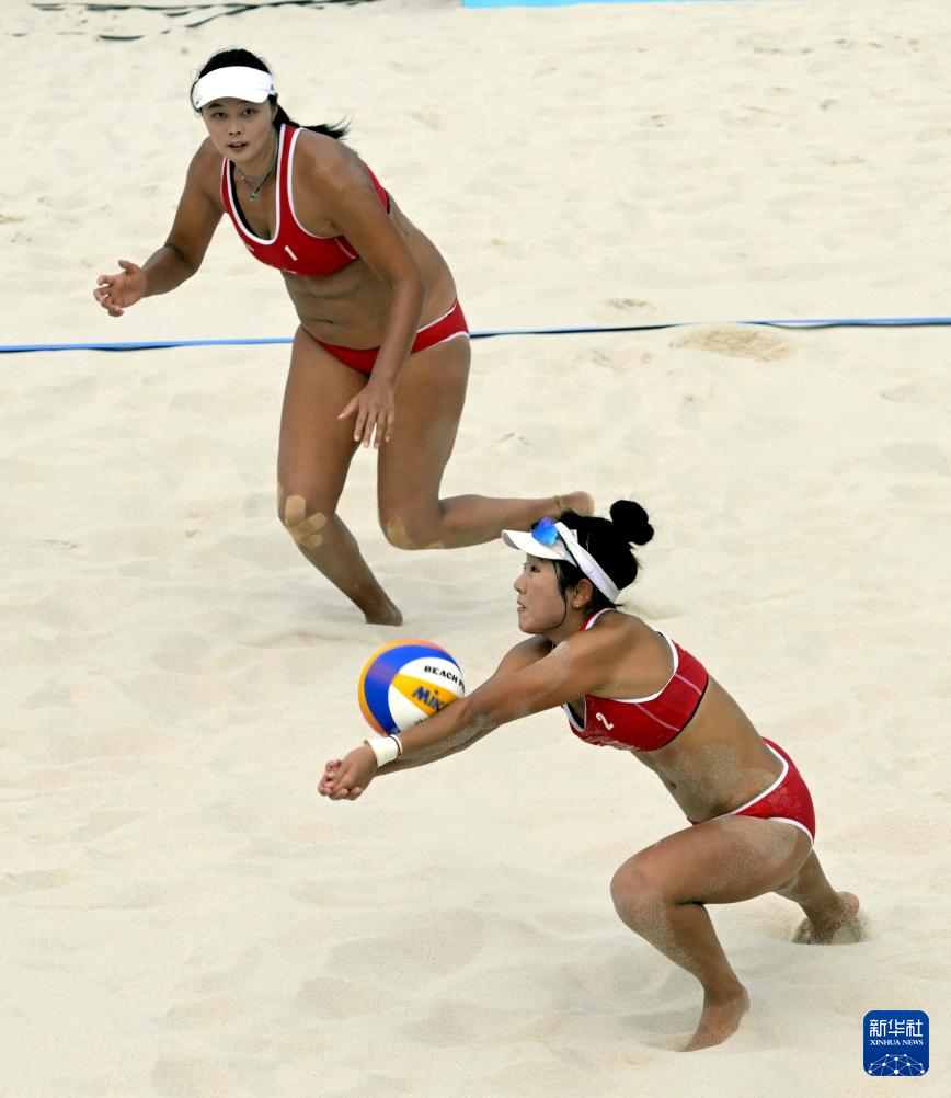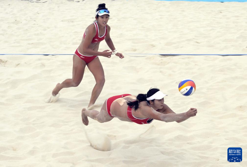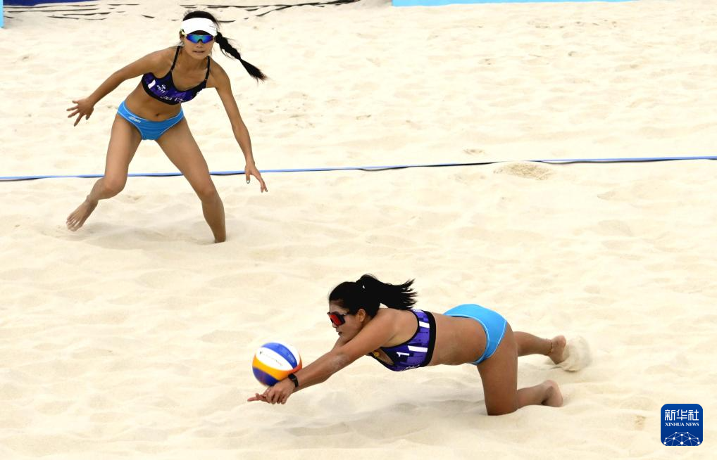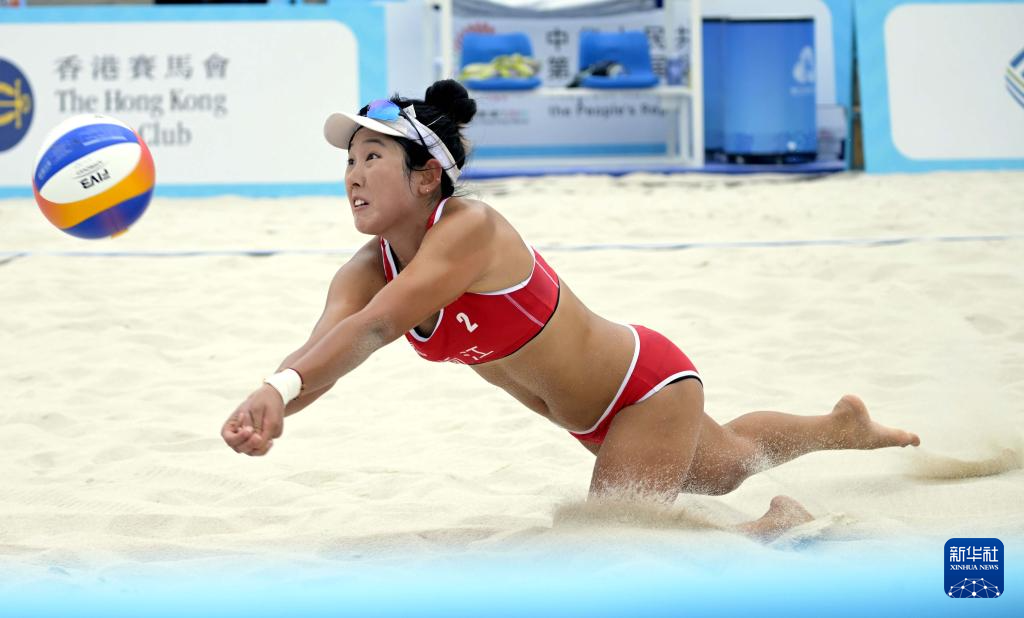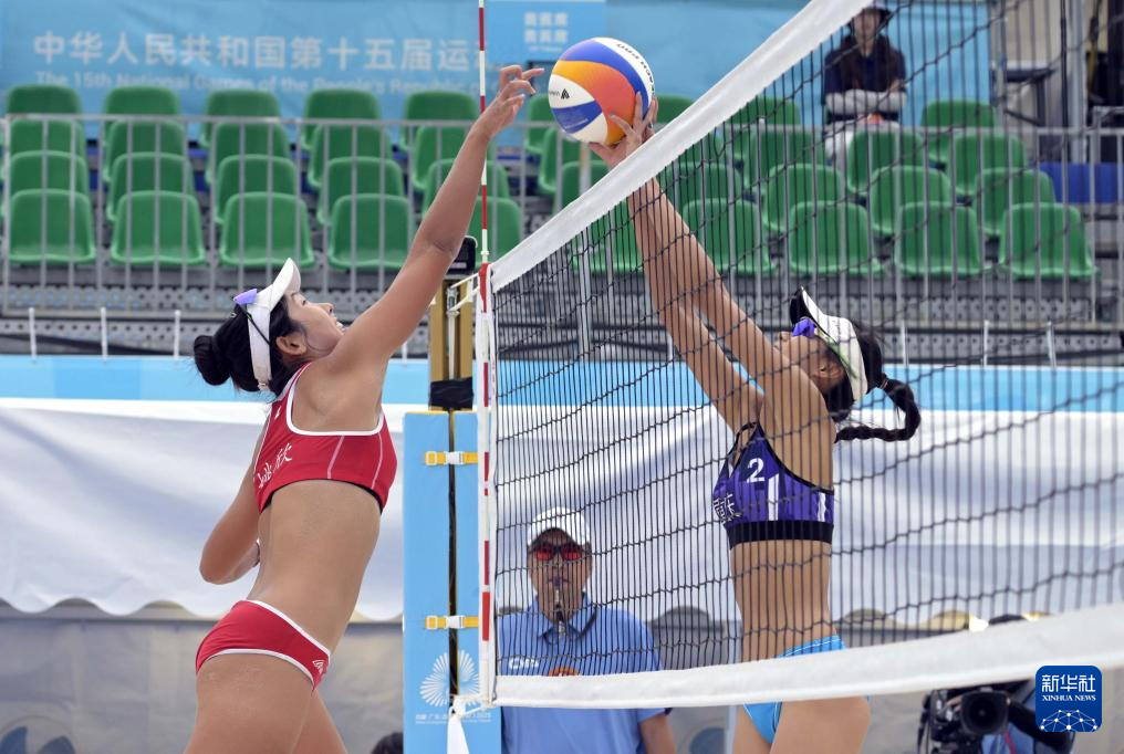 当日,在香港举行的第十五届全国运会沙滩排球女子小组赛D组比赛中,浙江队组合王凡/姚欣2比1战胜重庆队组合颜云肖/高月云。