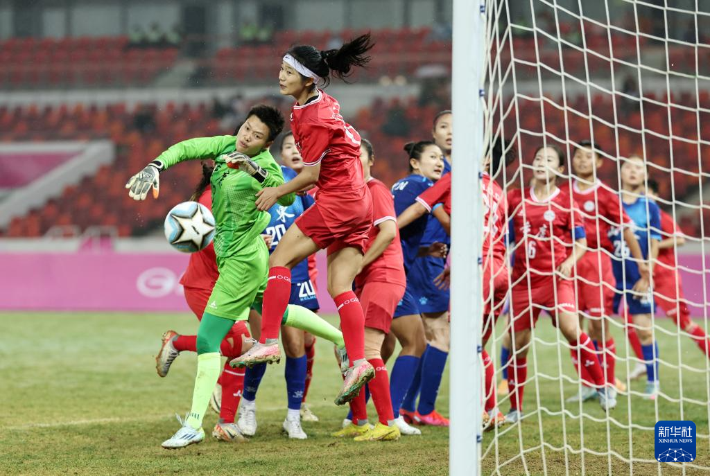 11月4日,重庆队守门员王芙蓉(左一)在比赛中扑救。