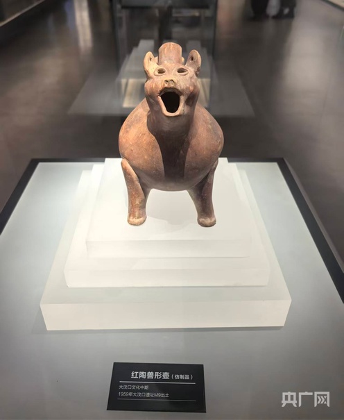 正在展出的红陶兽形壶仿制品(央广网记者刘博伦 摄)