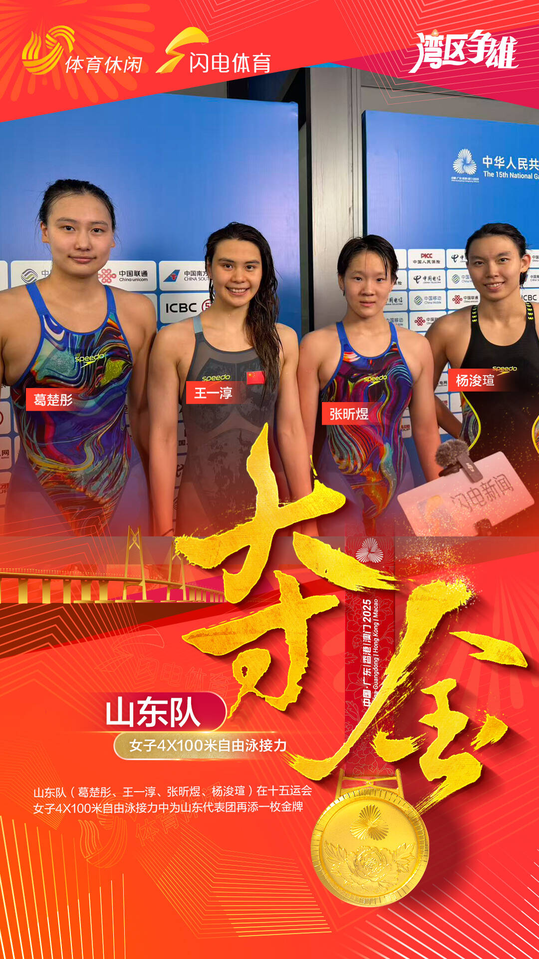 在女子4乘100米自由泳接力比赛中,山东队以“够山东”的险胜方式赢得金牌。这块金牌的要点有四:其一,山东队以0.1秒的优势战胜强大的浙江队,是一场充满悬念的险胜;其二,杨浚瑄曾经是中国短距离自由泳项目的领军人物,近年来受到伤病困扰,但她在第四棒比赛中表现极其神勇,以分段成绩全场最快的形式宣布王者归来;其三,赢得全运会的接力金牌,说明山东游泳已经从过去拥有少数优秀选手的队伍、成长为拥有一众优秀选手的队伍;其四,过去以蝶泳见长的王一淳、以混合泳见长的葛楚彤和年仅14岁的张昕煜,在比赛中均有出色发挥,教练员的阵容安排和战术部署堪称完美。
