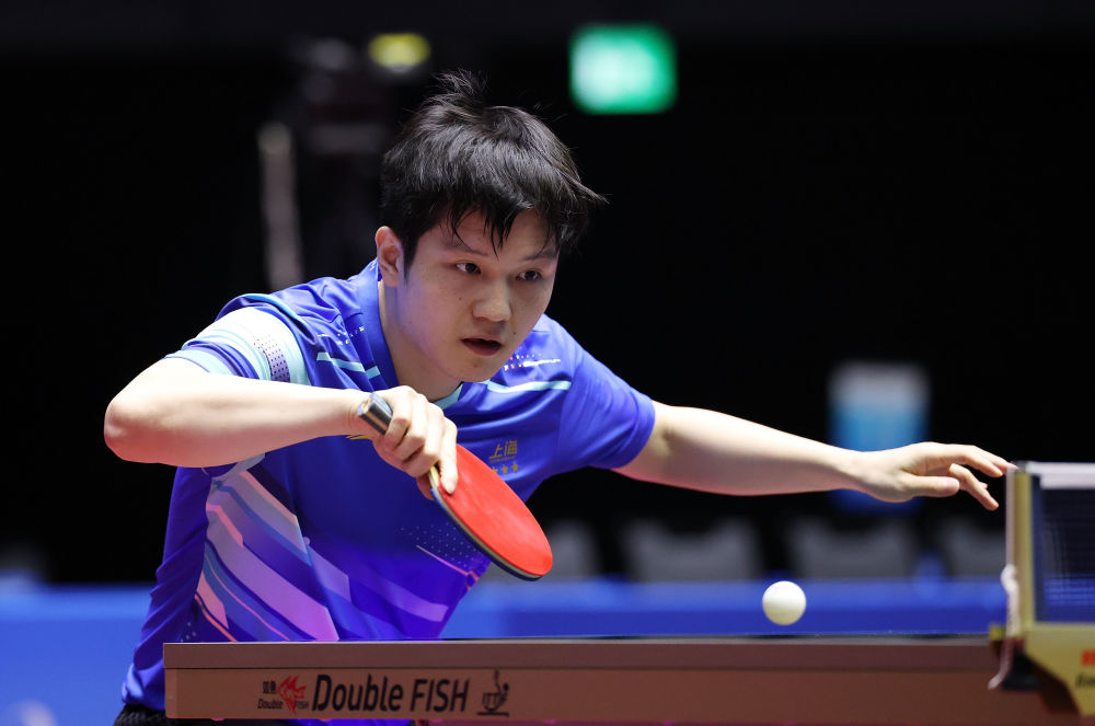 11月12日,樊振东在比赛中回球。新华社记者 梁旭 摄