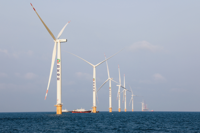 在山东半岛南部海域,国家电投建设的235台巨型风机如同生长在蓝天碧海间的“白色森林”,“吞”风“吐”电之间,年发绿电43.5亿千瓦时,每年减排的二氧化碳量可取代14000万棵大树的年固碳量。