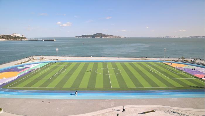 碧海蓝天下的“至海港湾足球场”
