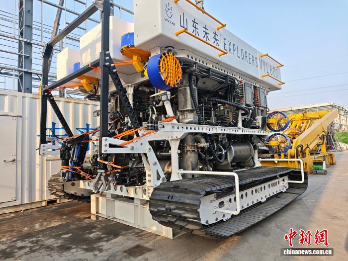 山东未来机器人有限公司厂区内的深海1500米铺缆作业机器人。中新网记者 刘越 摄