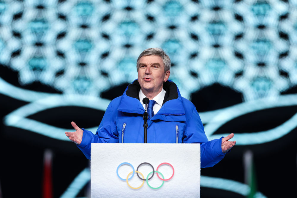2022年2月4日,巴赫在北京冬奥会开幕式上致辞。新华社记者 曹灿 摄