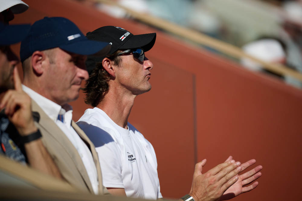 2024年6月9日,阿尔卡拉斯的教练费雷罗(右)在比赛中。当日,在2024法国网球公开赛男单决赛中,西班牙选手阿尔卡拉斯3:2战胜德国选手兹维列夫,夺得冠军。新华社记者 孟鼎博 摄