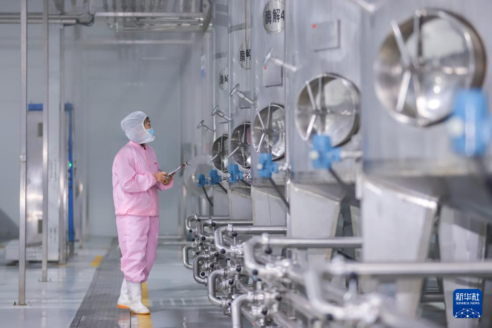 12月19日,在山东省乐陵市德润健康食品有限公司,工人在枣类饮品生产线上巡检。新华社发(张鹰摄)