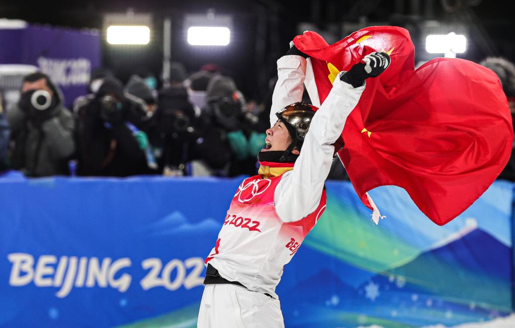 2022年2月14日,徐梦桃顶住名将考德威尔和劳拉·皮尔的冲击,为中国队赢下历史首枚女子空中技巧冬奥金牌。赛后,徐梦桃身披国旗跪倒在雪地里,她泪流满面转身嘶吼的画面无比令人动容。