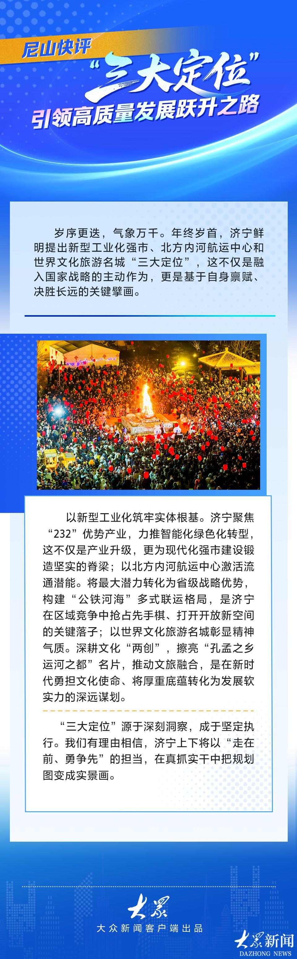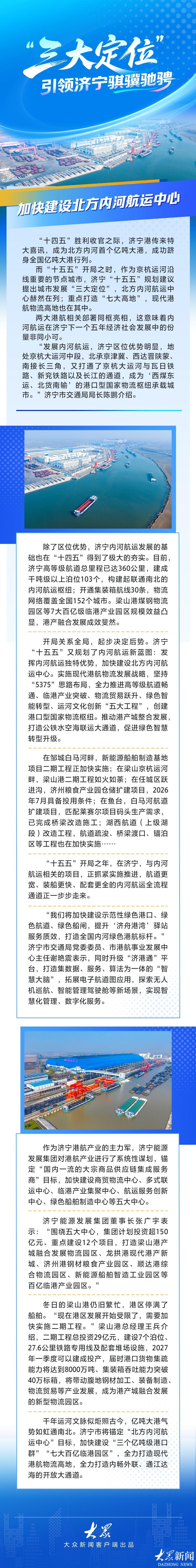 编者按:岁序更迭,气象万千。年终岁首,济宁鲜明提出新型工业化强市、北方内河航运中心和世界文化旅游名城“三大定位”,这不仅是融入国家战略的主动作为,更是基于自身禀赋、决胜长远的关键擘画。“三大定位”目标如何照进现实,引领济宁“骐骥驰骋”,记者进行了采访,敬请关注。