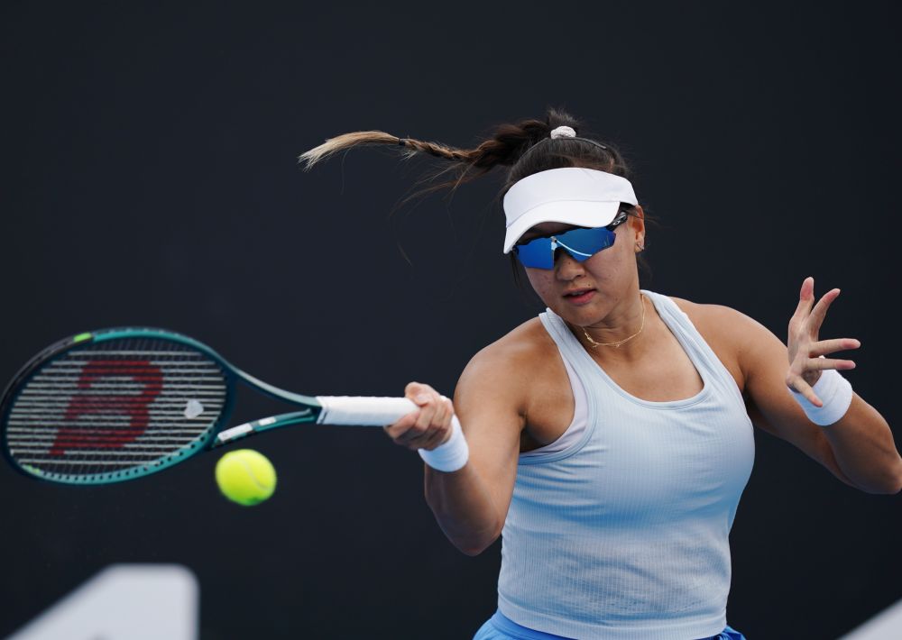 1月13日,郭涵煜在与沙尔科娃的比赛中回球。新华社发(王申摄)