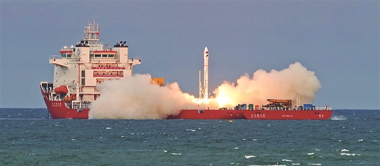 固体火箭“引力一号”在发射现场。资料图片