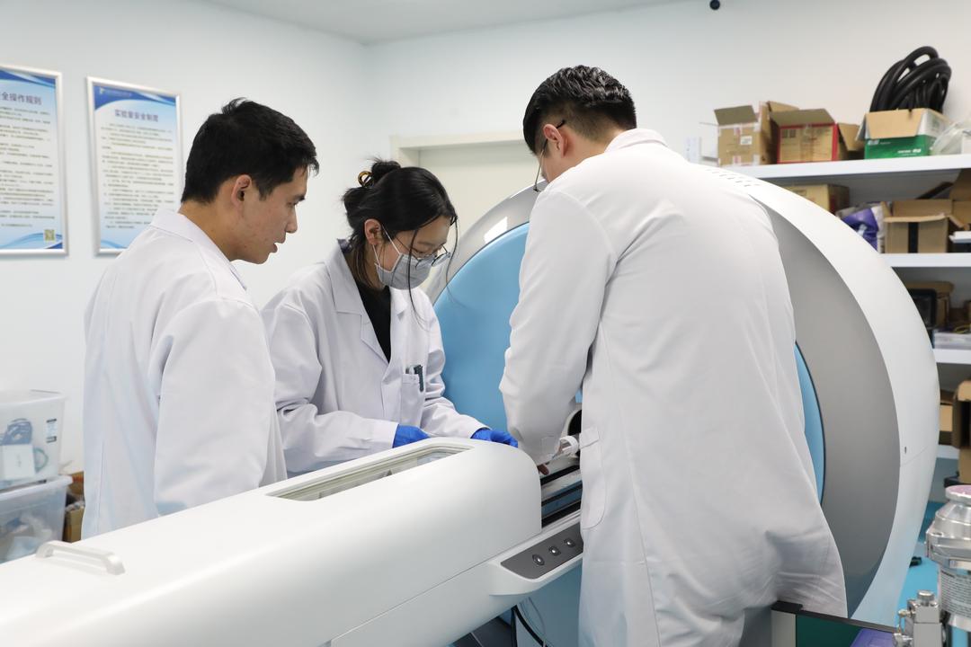 13日,记者在济南中科核技术研究院看到,隔着4米厚的墙,实验人员用回旋加速器“轰击”天然硝酸钙靶。“质子把钙-44原子核的一个中子‘撞’出来,就得到钪-44。”该院副研究员王一正告诉记者,钪-44生产工艺复杂,此前国内只能做到实验室量级。而国外10年前便开始研发,已实现量产,进行了药物研发与临床试验。