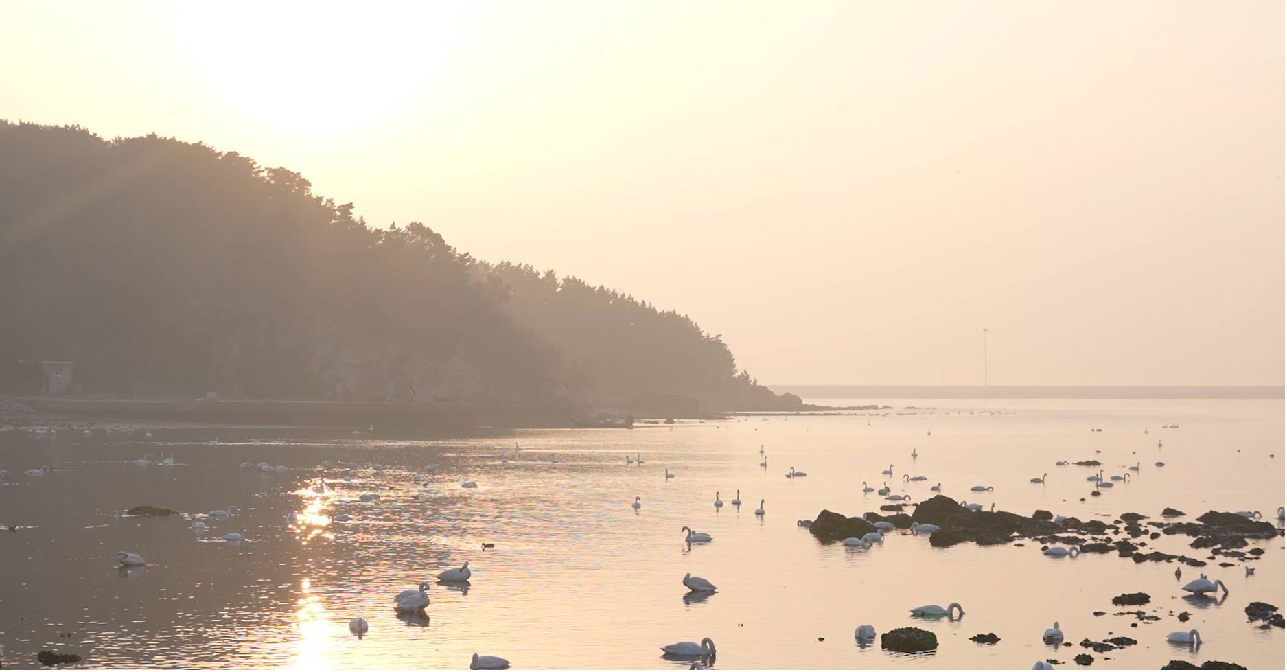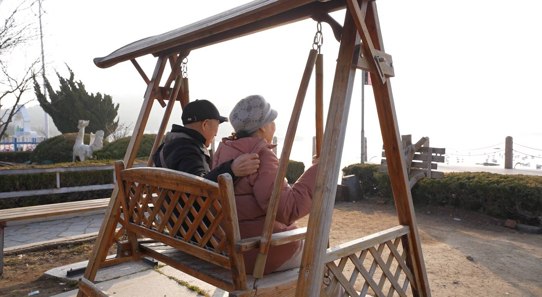 伴随着日出,老两口终于到达了威海市烟墩角村,这是联合国评选出来的世界最佳旅游乡村,大天鹅已经从西伯利亚等地结伴而来。看天鹅的最佳时间终于到了。老两口情不自禁地说:“咱们回去了,回到了我们两个人的世界。”