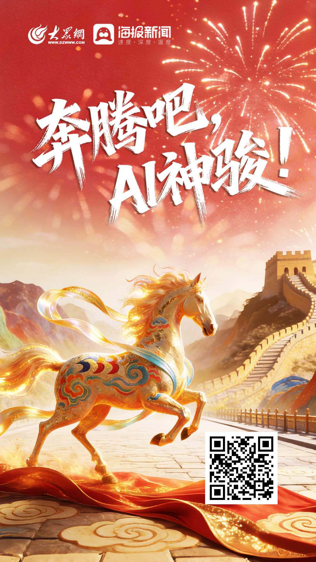 这是马年最潮的打开方式——让科技赋能文化觉醒,让千年审美焕发生机。AI重构的,不只是山海形胜与非遗华章,更展现了中华民族精神基因里的奋进驰骋之势。(注:本视频形象和声音皆由AI生成)