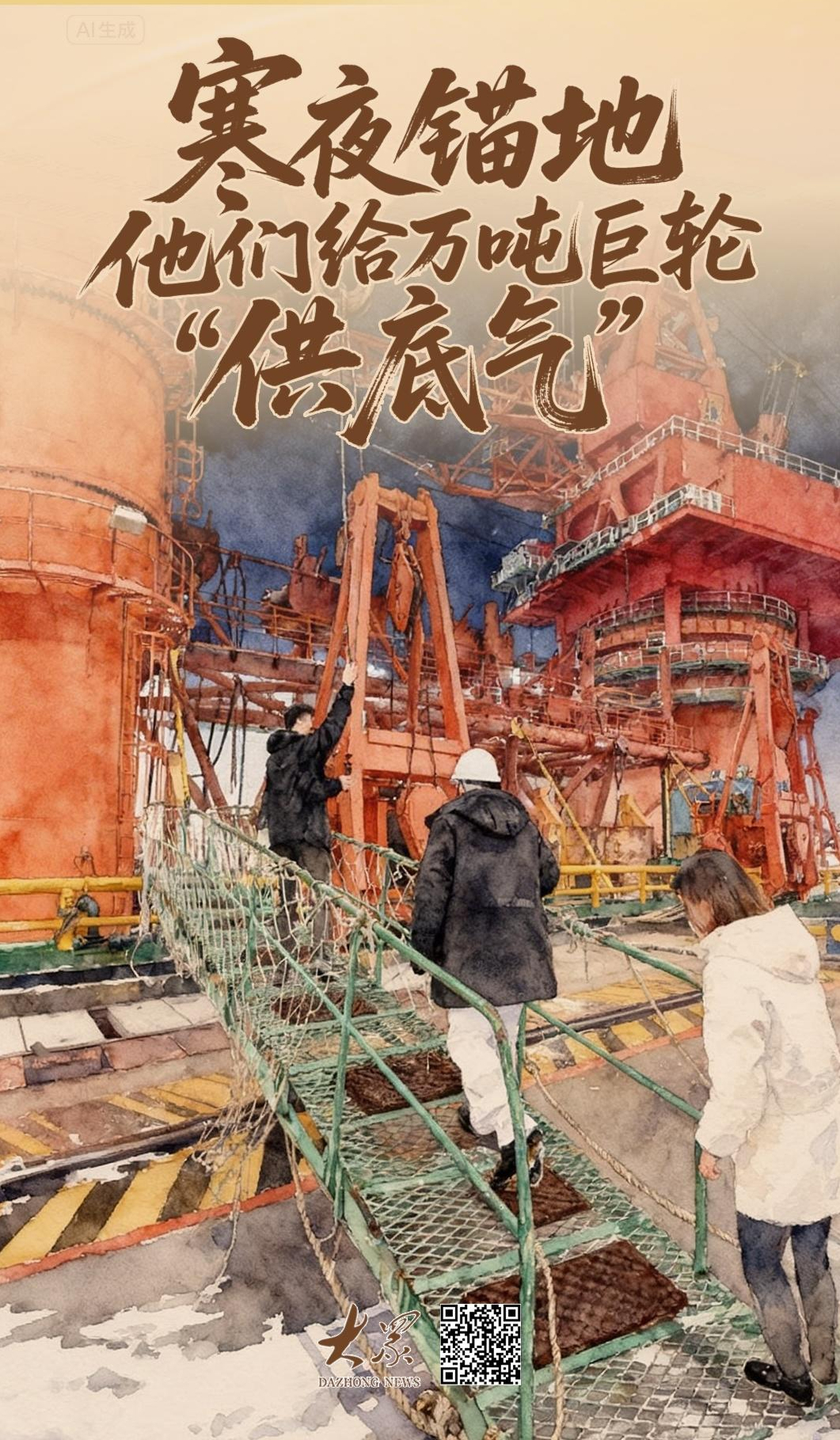 当天是腊月二十三,小年。一道光束划破码头的昏暗,王国锋踩着晃动的软梯登上甲板,“哐当”一声,金属接头撞在船舷上,清脆冷硬。他紧了紧安全帽带,脚下的步伐稳当有力。