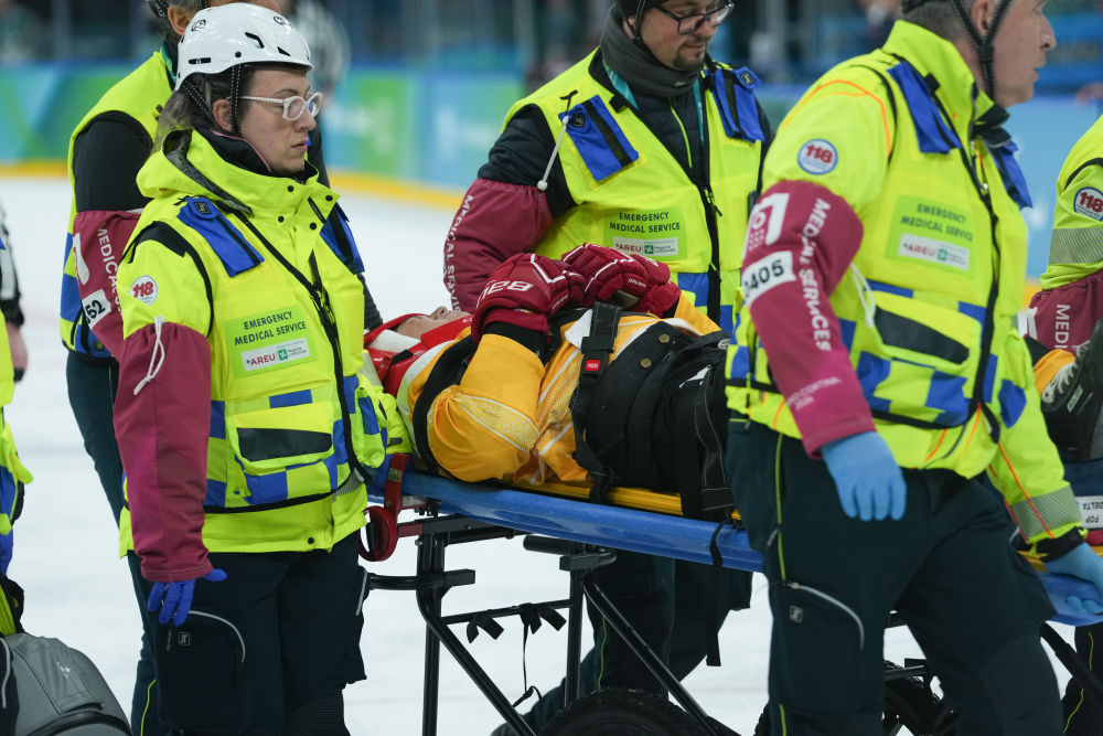 3月13日,邱殿棚在对阵加拿大队的比赛中受伤离场。新华社记者 李京 摄