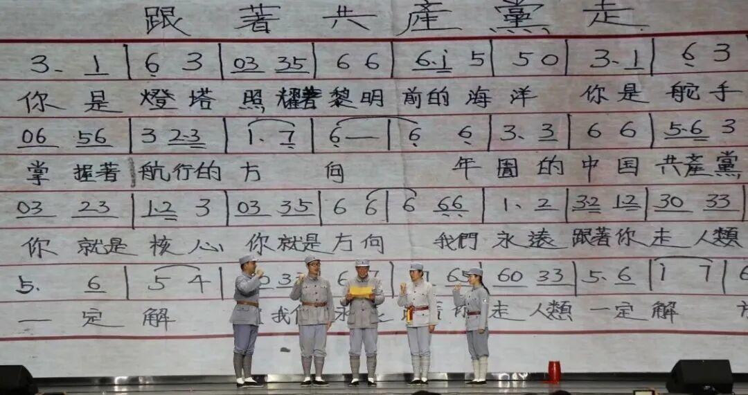 “掌握着航行的方向,伟大的中国共产党,你就是核心,你就是方向……”随着演员深情唱响,小戏小剧《跟着共产党走》上演,艺术还原了1940年沙洪、王久鸣在东高庄创作红歌的场景。熟悉的旋律带动全场合唱,歌声回荡村落,将报告会推向高潮。