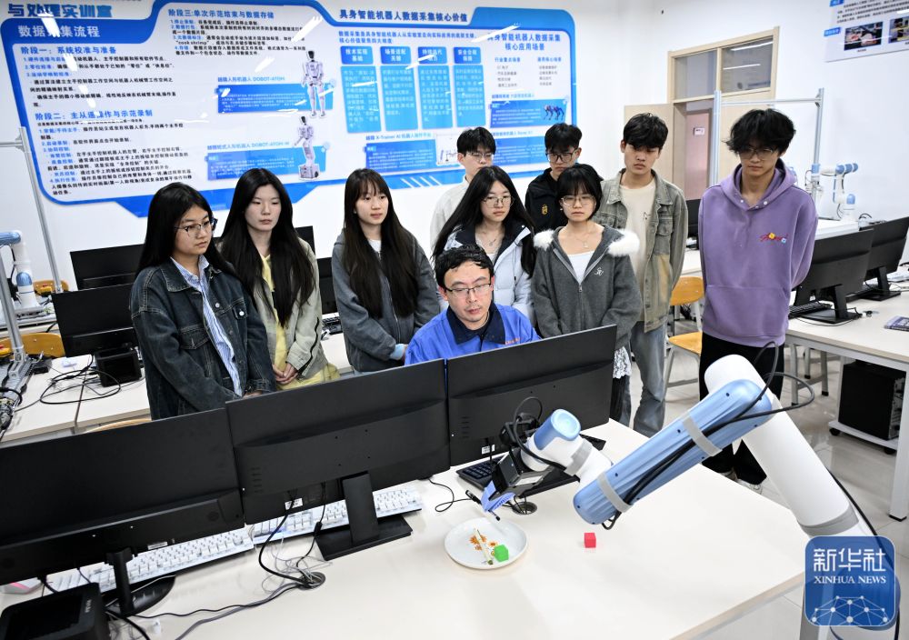 今年以来,青岛职业技术学院依托其具身智能机器人实训基地,将越来越多的机器人应用场景搬进课堂,推动人工智能与基础教学深度融合,逐步建设起集具身智能、机器人硬件、智能控制于一体的教学研体系。