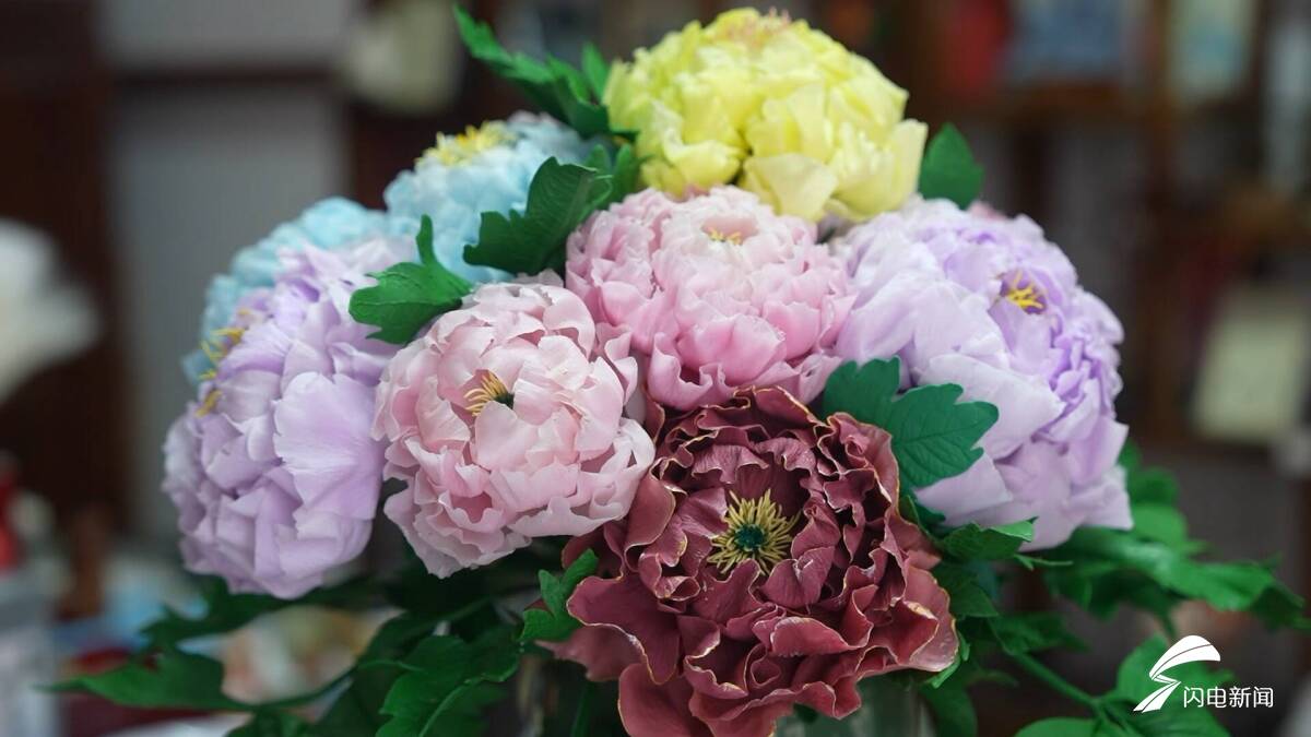 在曹县江米人传习所,国家级非物质文化遗产代表性项目曹县江米人第五代代表性传承人刘彦中,正全神贯注地创作作品《盛世牡丹》。一团团江米面在他指尖精妙地揉、捏、压塑之下,不多时,一朵朵雍容华贵、层叠饱满的牡丹花便栩栩如生地呈现在眼前。“江米人的制作过程,其实并没有那么简单,你看我们制作这个花卉,它需要一瓣一瓣的花瓣制作成型,成型之后,需要晾晒,接着再去组装,一朵牡丹花的制作周期,就得需要一天半的时间才能够完成。”刘彦中告诉记者。
