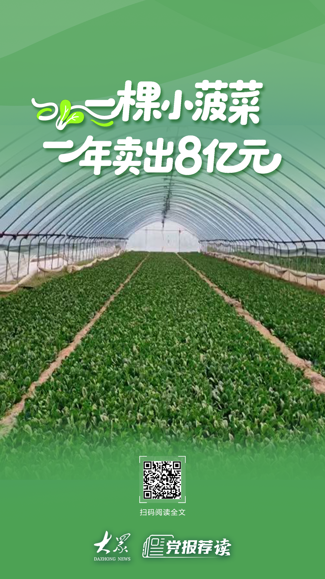 “咱这砂壤土里的菠菜,根扎得深,养分足,叶子厚实又鲜嫩,品质上佳。高峰期咱全镇一天就能卖出50多万斤,年产值近8亿元。”山东昊瑞农业科技发展有限公司总经理伊善岭说。