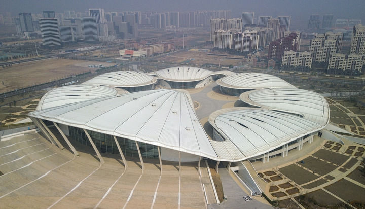 这是位于山东省青岛市的青岛·上合之珠国际博览中心(3月26日摄,无人机照片)。新华社记者 徐速绘 摄