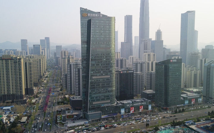 这是位于济南市的科技金融大厦,山东科技大市场坐落在这里(3月28日摄无人机照片)。新华社记者 徐速绘 摄