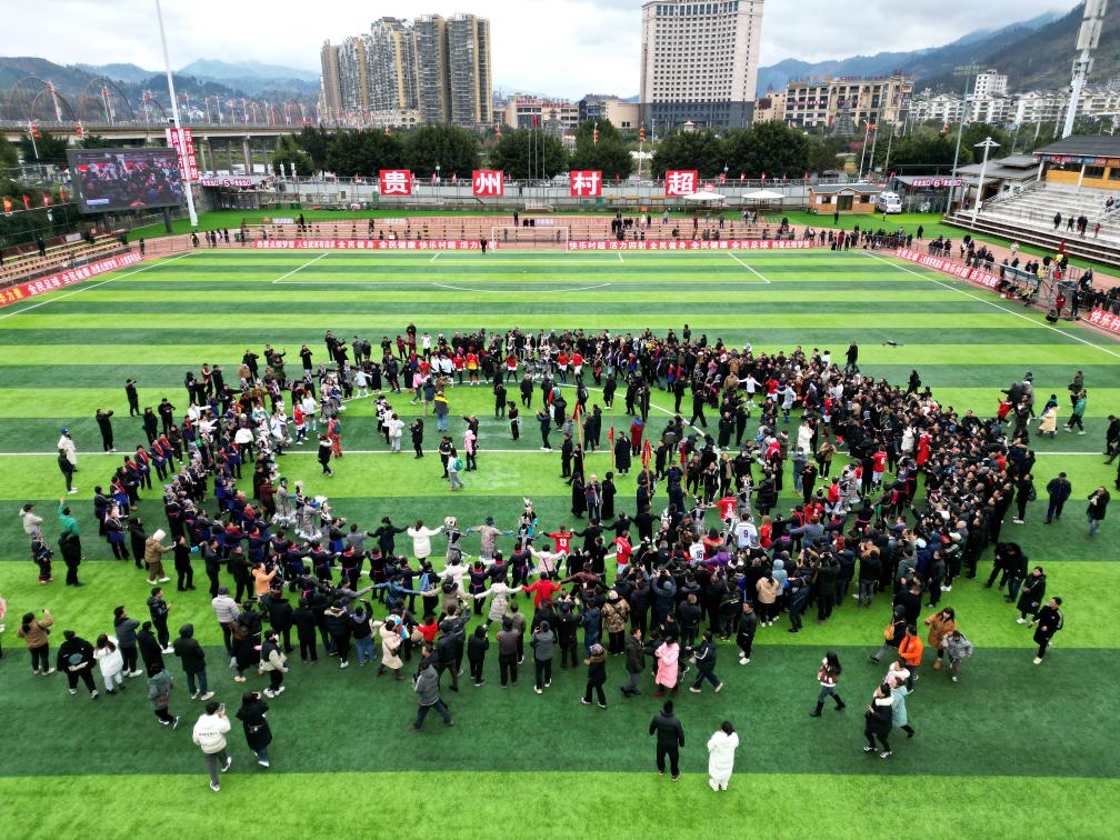 比赛结束后,两队队员及其亲友团和现场大批观众涌入球场中心,手拉手跳起侗族舞蹈,以一番热闹、欢乐的联欢结束了当天所有活动。