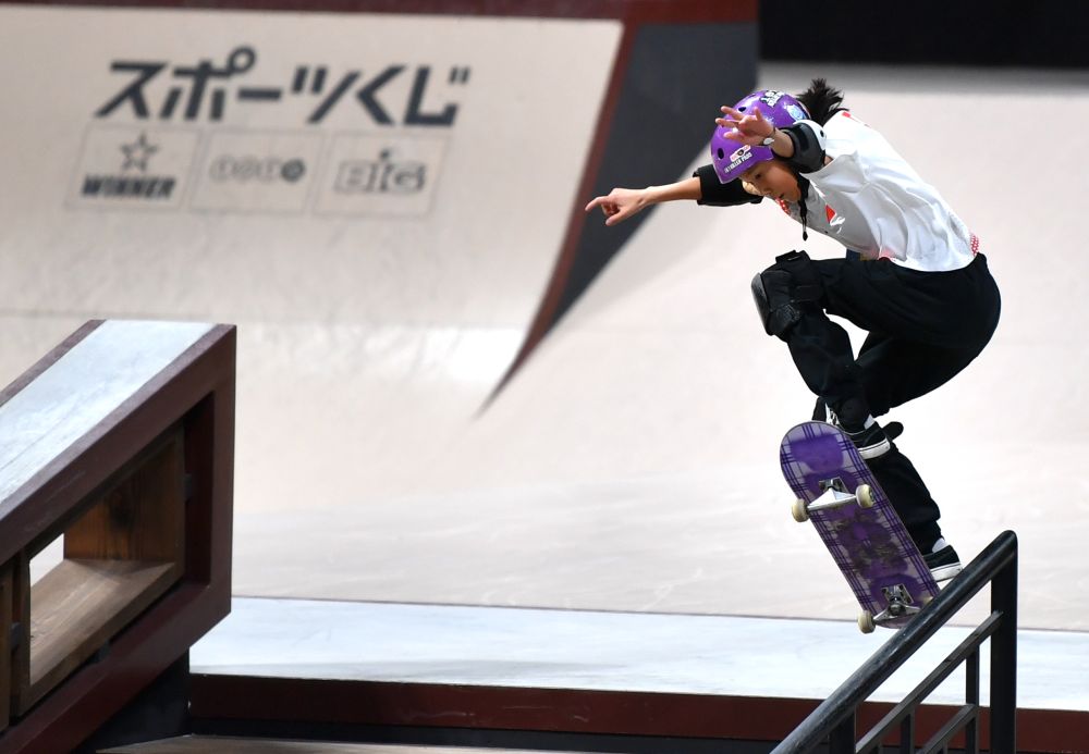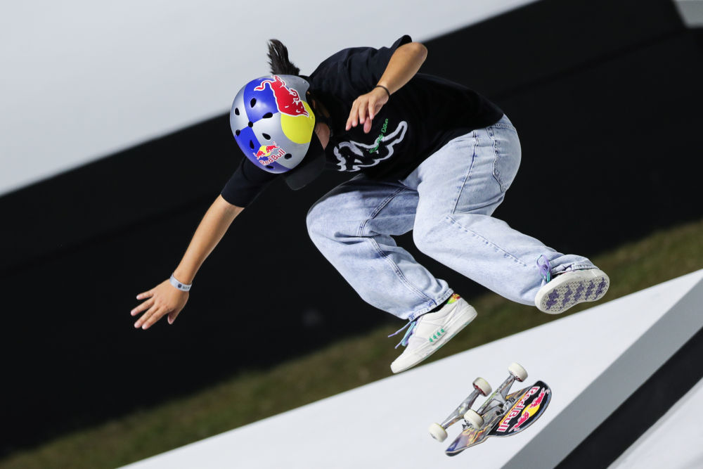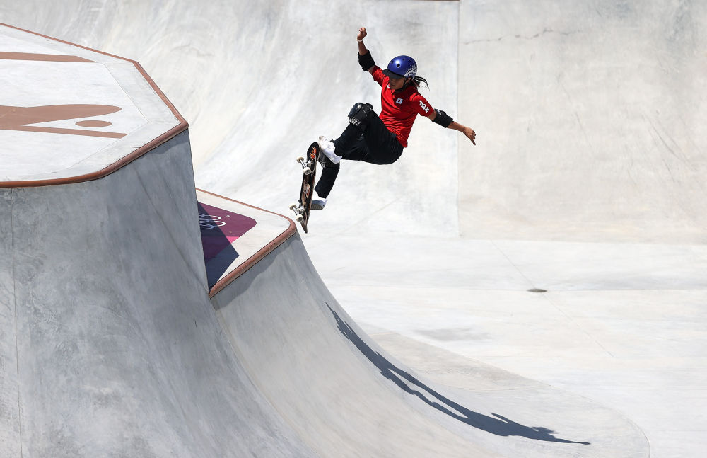 2021年8月4日,日本选手四十住樱在东京奥运会滑板女子碗池决赛中。新华社记者 曹灿 摄