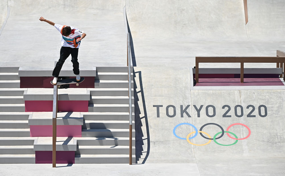 2021年7月25日,日本选手堀米雄斗在东京奥运会滑板男子街式决赛中。新华社记者 薛玉斌 摄