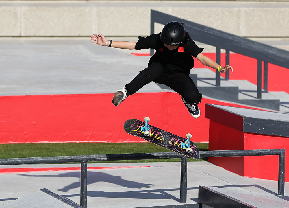 2023年2月1日,中国选手张艳在2022滑板世锦赛女子街式资格赛中。新华社记者 王东震 摄
