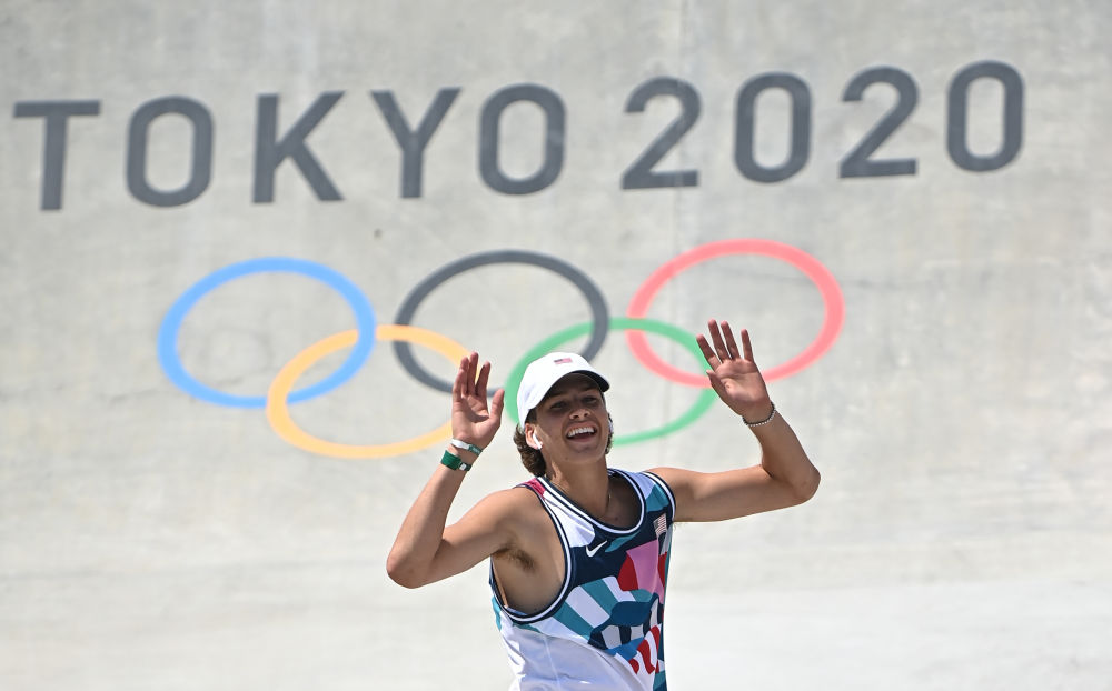 2021年7月26日,巴西选手莱亚尔在东京奥运会滑板女子街式决赛中。新华社记者 李尕 摄