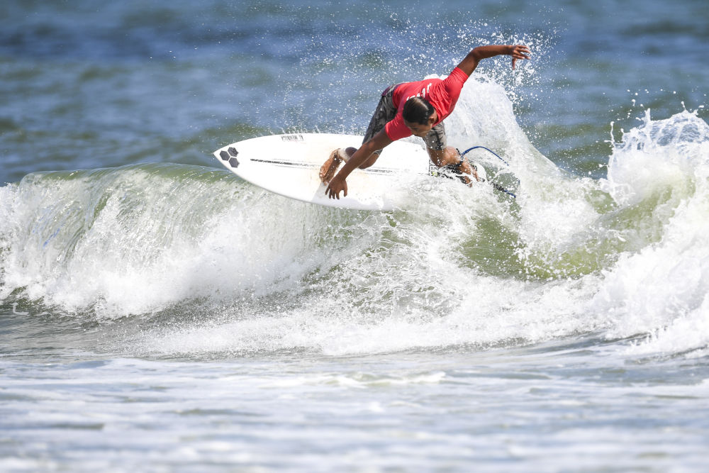 2023年7月12日,海口队选手吴世栋在第一届全国学生(青年)运动会冲浪项目男子短板决赛中,他以15.00分的成绩获得冠军。新华社记者 曹祎铭 摄